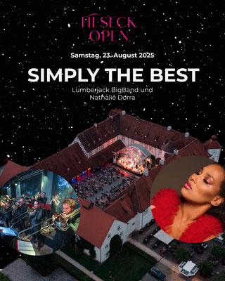 Für die Göppinger Lumberjack BigBand steht mit „Simply the Best“ eine Hommage an zwei der größten Stimmen der Musikgeschichte auf dem Programm: Gemeinsam mit der charismatischen Sängerin Nathalie Dorra, Backroundsängerin und Duettpartnerin von Udo Lindenberg, bringt die Bigband die unvergesslichen Hits von Tina Turner und Whitney Houston auf die Bühne.